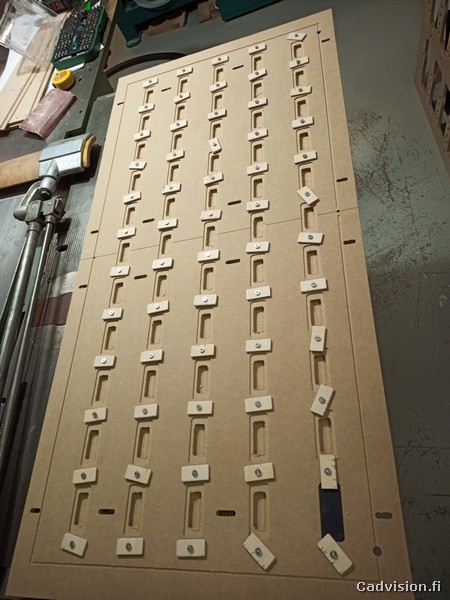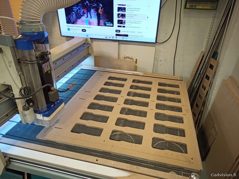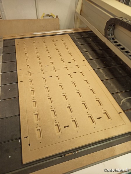 Oli todella kiireinen viikko, joka sisälsi cnc:n modausta, kiinnitysjigien suunnittelua ja valmistusta ja muovikoteloiden aukotussarjojen ajoa pari vuorokautta samoilla silmillä. Tässä vain tiivistetysti muutama kuva viikon puuhailuista.